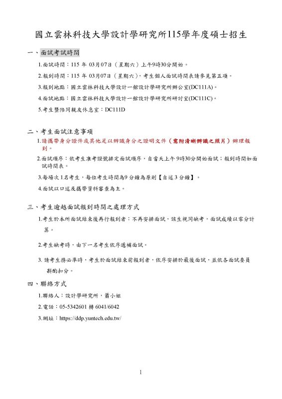 115學年度碩士招生面試須知